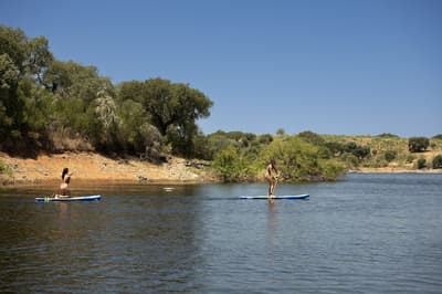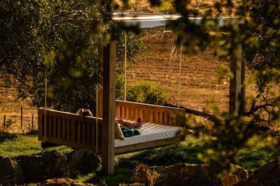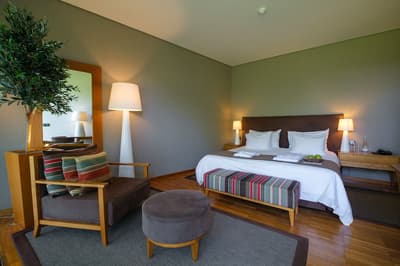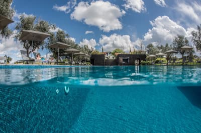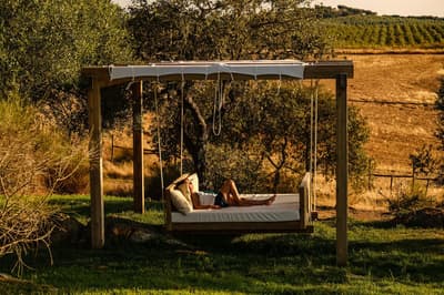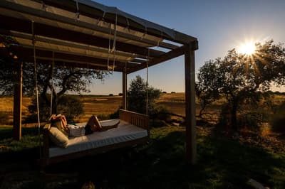 Qui veut un pied-à-terre intime et paumé en pleine campagne avec une ambiance très méditerranéenne pour son séjour au Portugal ? Situé dans la région ensoleillée de l’Alentejo, Herdade de Cortesia a un emplacement tip top pour les amateurs de calme et de nature. Autour de ce petit hôtel 4 étoiles moderne et élégant (qui ne compte d'ailleurs que 30 chambres) s’étendent des jardins entourés d’une campagne qui sent bon la garrigue. Les chênes lièges sont les maîtres des lieux, et avec un peu de chance, vous pourrez apercevoir les paons et les lièvres qui se baladent dans le coin. Reposez-vous sur l’un des transats bordés de fiers oliviers qui entourent la piscine extérieure. Et si la faim se pointe, direction le restaurant de l’hôtel, où une cuisine du terroir raffinée vous attend. D’humeur à crapahuter dehors ? L’hôtel vous propose une ribambelle d’activités de sport et de loisirs en plein air – comme de la randonnée et des escapades en vélo (gratuites). Il y a aussi plein d’activités nautiques à faire du côté du lac Maranhão juste à côté. Mais le must du must, c’est évidemment de s’offrir un petit tour en montgolfière histoire d’admirer la campagne depuis les airs ! Filez donc vous prélasser sur le lit king size de votre élégante chambre de 25 m² avec vue sur les environs en guise de récompense. Oh, et on vous a dit que l’hôtel est certifié Biosphere, un label touristique qui reprend les 17 objectifs de développement durables fixés par l’ONU ?