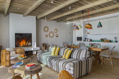 La décoration est plutôt minimaliste et contemporaine avec un mobilier confortable, des luminaires design, un plafond avec poutre apparente et se complète dans une dominance de blanc. Après une journée de découverte de la réserve protégée de comporta, détendez-vous dans le coin salon avec cheminée. La chambre est dotée d’un grand lit douillet et la salle de bains est entièrement équipée. Ambiance zen !