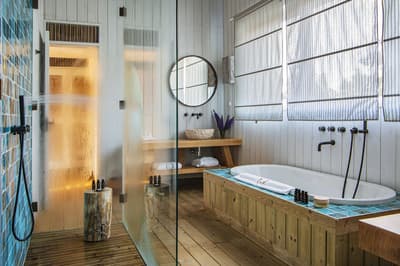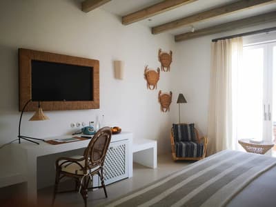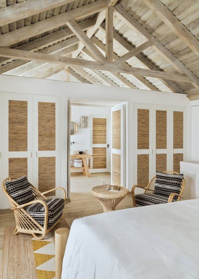 La décoration est plutôt minimaliste et contemporaine avec un mobilier en rotin ou osier, des luminaires design, un plafond avec poutre apparente et se complète dans une dominance de blanc. Après une journée d'activités, reposez-vous dans le grand lit douillet. La salle de bains complète bénéficie d’un accès à un patio extérieur privé. Ambiance zen !