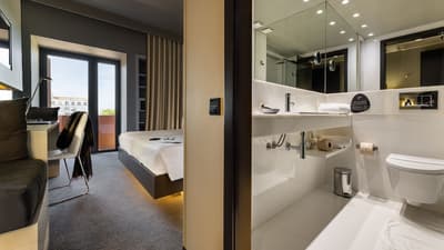 Très spacieuse, elle est encore plus confortable et agréable. Elle baigne dans une atmosphère sereine. Son grand balcon est complètement aménagé pour apprécier la vue sur la ville et sur la végétation. Elle dispose d’un lit double et le salon est meublé de beaux fauteuils. Salle de bain chic.