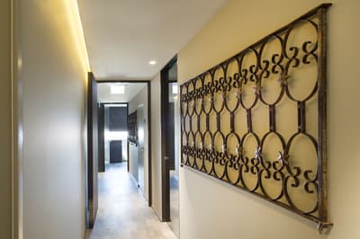 Chic et raffinée, l’ensemble est merveilleux. La grande baie vitrée laisse pénétrer la lumière naturelle pour une pièce lumineuse et accueillante. Le mélange de bois et de verre lui donne une touche d’exotisme et d’élégance. Quelques touches de couleurs vives égaient l’ensemble.
