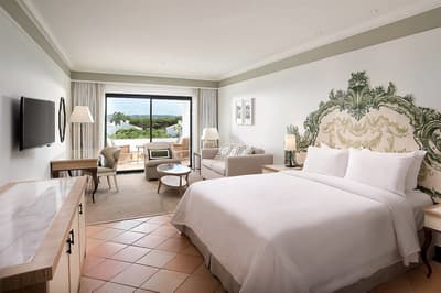 Cette luxueuse chambre offre une vue imprenable sur le complexe et ses terrains bien entretenus que vous pourrez contempler depuis la terrasse meublée; détendez-vous dans les deux chaises longues rembourrées et sirotez votre boisson préférée tout en profitant du soleil. À noter qu’une chambre communicante peut être disponible.