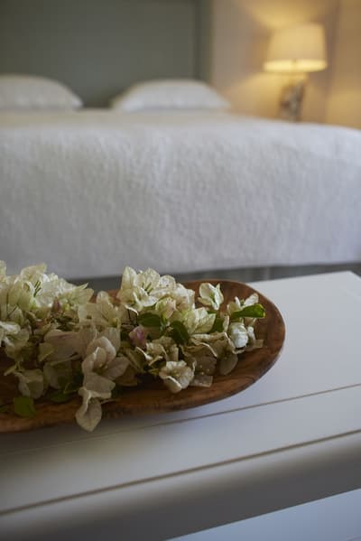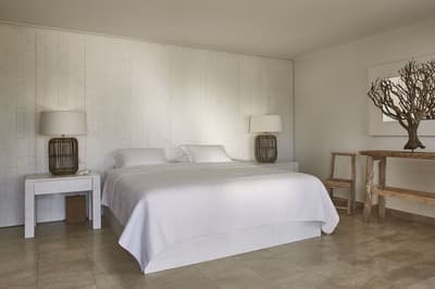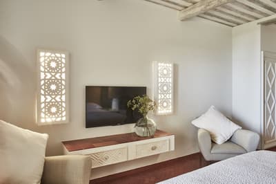 Pouvant être située au rez-de-chaussée ou au premier étage, elle peut disposer d’une terrasse et petit jardin privatif ou d’un balcon avec coin salon extérieur et petit lit de jour. À noter qu’il est possible de connecter les suites pour former un duplex ou pour créer une aile privée et spacieuse au sein de Vila Joya.