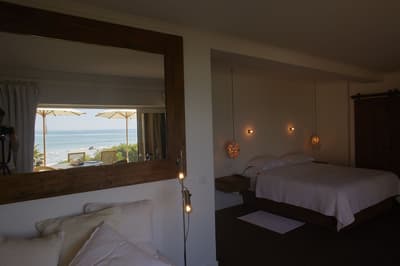 L’ensemble est dans un style de décoration moderne et traditionnel et se complète dans des tons blanc, beige et gris ou des couleurs claires. La chambre est dotée d’un grand lit king size et la salle de bains peut être en carreaux portugais peints à la main avec une petite fenêtre s’ouvrant sur la mer et équipée d’une douche à l'italienne ou d’une baignoire japonaise. Ambiance tropicale !