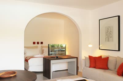 Spacieuse, elle offre une vue magnifique sur les jardins du complexe que vous pourrez contempler de la grande terrasse tout en profitant du soleil. La chambre profite d’une belle lumière naturelle dont vous pourrez bénéficier dès le réveil.