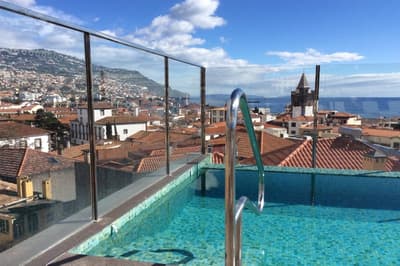 Boutique-hôtel telle une maison dans la ville historique de Funchal, avec vue sur la baie et piscine sur le toit.