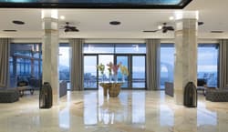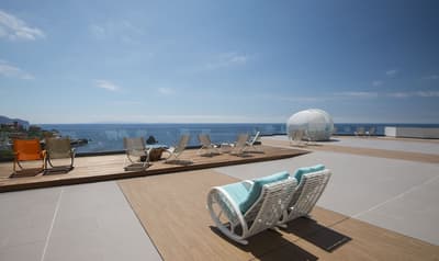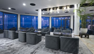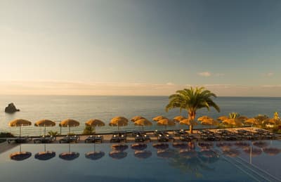 En voilà un qui a plus d’une corde à son arc. Déjà, il possède deux des labels éco-responsables les plus connus et les plus anciens du monde du Tourisme Durable, à savoir Green Key et Biosphere. Autant dire que c’est un poids lourd en matière d’engagement pour la protection des ressources ! Ensuite, il est situé à Funchal, sur la jolie petite île de Madère, du côté de la mer. Genre littéralement face à la mer : on voit les vagues scintiller depuis les colonnes blanches de ses bâtiments modernes comme depuis les terrasses bordées de palmiers et depuis l’eau bleutée de la piscine en plein air. Même certains de ses trois restaurants ont pour toile de fond ce beau cadre maritime, plutôt pas mal comme décor pour goûter à la cuisine raffinée des lieux. Le restaurant italien a le vent en poupe, et le petit déjeuner n’est clairement pas en reste ! Ne vous faites pas de bile, il y aura bien entendu des saveurs locales et de bons produits de l’Atlantique au menu. Et côté chambres, alors ? L’esprit des lieux se veut moderne et sans chichis : on est sur des couleurs claires entre blanc, bleu et gris, avec des petits détails qui vont bien comme la tête de lit façon peinture contemporaine. Vous avez l’image ? Promenez-vous le long des couloirs marbrés encadrés de larges colonnes jusqu’à trouver le chemin du SPA ou du centre sportif, et le tableau sera complet. Profitez-en pour jeter un coup d’œil au plafond, il donne l’impression qu’un plongeur nage juste au dessus de vos têtes...