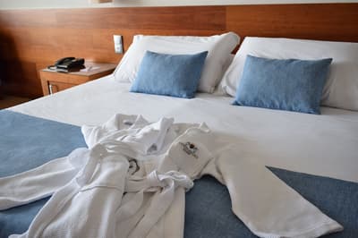 Plus spacieuse, c’est encore plus de confort. Installée en front de mer, elle profite d’une vue époustouflante. Son balcon est aménagé de belles chaises pour apprécier le cadre serein et reposant. La chambre a tout le nécessaire pour un séjour merveilleux. Elle accommode des lits jumeaux et dispose d’un canapé-lit dans un coin de la pièce. Salle de bain avec baignoire.