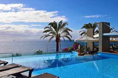 On va pas se mentir, quand on vient à Madère, c’est pour la mer et la beauté de ses terres. Eh bien vous allez être servis au Pestana Promenade ! Vous ne pouvez pas être plus proche de l’océan puisque l’hôtel est disposé au-dessus de la promenade maritime, avec un accès direct à la plage, of course. Ne vous fiez pas à son allure extérieure froide et sûrement trop moderne : alors qu’on se trouve à deux pas de la vieille ville de Funchal, au charme ravageur, à l’intérieur, vous découvrez une petite oasis entourée de palmiers ! Et à situation exceptionnelle, piscine exceptionnelle : vous vous baignez dans les eaux bleues avec ce paysage océanique fou devant vous. Les chambres vous proposent d'ailleurs de profiter à fond de tout ça avec leur terrasse. On vous conseille d’opter pour les suites, plus grandes, qui offrent des prestations haut de gamme fascinantes avec baignoire vue mer ou jacuzzi sur la terrasse ! Quant au spa, il va vous permettre de vous détendre totalement entre deux visites, car ici, il y a à faire et à voir ! Rien que les parcs de Funchal valent franchement le détour. Bref, c’est un hôtel hyper bien placé, sympa, taillé sur mesure pour déconnecter face à l’océan. Idéal à deux, même si les enfants sont les bienvenus aussi ;) !