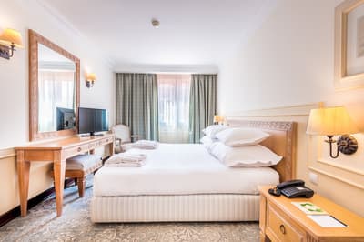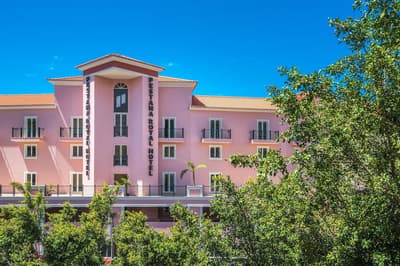 Avis aux amateurs de la formule all-inclusive qui cherchent un pied à terre sur l’île de Madère : le Pestana Royal de Funchal pourrait bien vous plaire. Situé à Funchal, capitale de ce joli petit archipel portugais, l’immense resort sort du lot malgré ses chambres un peu vieillottes : il a bien d’autres atouts dans sa manche ! Pour commencer, on a là quatre restaurants avec des buffets copieux et variés disponibles à l’heure du petit déjeuner comme du déjeuner et du dîner – et même un brunch quotidien. Filez donc digérer tout ça calé sur le sable noir de la plage de Formosa, a.k.a la plus grande plage de la ville, avec en prime vue panoramique sur la colline de Cabo Girão (qui se trouve à peu près à 10 minutes à pied). Ou allez buller dans les piscines de l’hôtel si vous préférez (vous avez le choix entre la luxueuse piscine intérieure du SPA et les deux piscines bleutées en plein air). Pour la bronzette, direction le solarium ! Les amateurs de sport pourront aussi aller tâter de la balle du côté du mini golf ou des courts de tennis, ou s'offrir une bonne suée à la salle de sport. On n’oubliera pas de mentionner l’excellente réputation du personnel, connu tant pour sa gentillesse que pour sa disponibilité. Et côté engagements écolos, alors ? Là aussi, on est pas mal : le groupe Pestana a son propre programme de durabilité et possède notamment le label Green key.