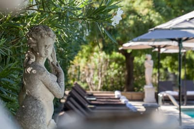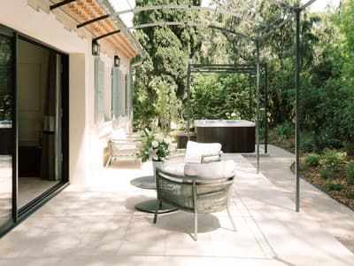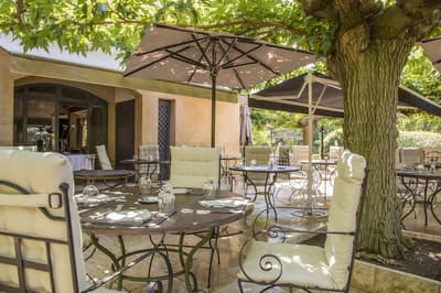 Hôtel chic, aux airs de mas provençal XXL, avec spa, piscine, resto gastronomique, bar, terrain de pétanque... le tout à l'orée du parc naturel des Alpilles.