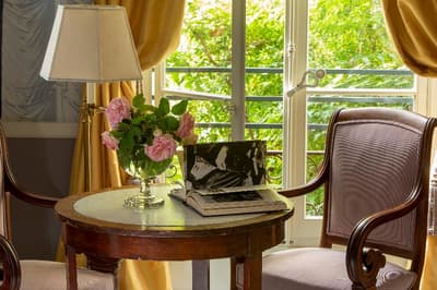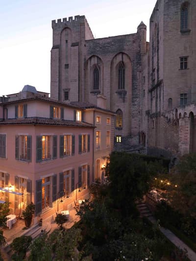 Waouh. Il faut vous en dire plus ? Allez, c’est bien parce que c’est vous ! La Mirande, c’est LE plus bel hôtel d’Avignon. Dans ce lieu, au XIVe siècle, les cardinaux y recevaient les papes à dîner. Aujourd’hui c'est vous qui vous asseyez là, dans cette salle à manger, ou dans le jardin merveilleux où il est de bon ton de boire un dry martini après un soir de première dans la Cour d’Honneur du Festival d’Avignon. Vous montez ensuite dormir dans l’une des 26 chambres toutes uniques. Attention, ici, ça déborde ! De tentures, de gros meubles et de tapisseries ! Chaque mur a gardé sa tapisserie d’origine : La Rivière Enchantée, La Roseraie, Le Grand Corail, Le Bambou, La Corne d’Abondance, Le Perroquet, Le Singe Savant… Les murs sont classés aux Monuments historiques, rien que ça ! Mais si les toiles de Jouy sont du XVIIIe, La Mirande n’a pas oublié de passer au XXIe, le wifi est haut débit et les chambres sont climatisées pour pouvoir faire face aux canicules avignonnaises l’été. La vue sur le Palais des Papes si collé à La Mirande est partout. Fermez les yeux, vous y êtes, vous entrez dans la suite, vous asseyez au bureau, écrivez, puis avant d’aller dîner vous vous prélassez dans la baignoire en marbre. Vous ne pourrez pas quitter l'hôtel où traîner, dans les salons, est un art de vivre.