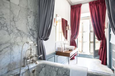 Dire que Marseille et Los Angeles se ressemblent beaucoup, c'est pas faux ! Et les driv’in et les routes qui s’entrelacent ne sont que la partie immergée du rocher. A Marseille, comme à LA, le secret règne, il faut le savoir. Et pour en être... il faut savoir. Et nous, vous voyez, on sait et du coup, vous, vous en êtes ! Non, parce qu' il est juste impossible, sinon, de savoir qu’un 5 étoiles se planque dans une ruelle de l’hyper centre, dans un immeuble du XIXe... Et que le lieu se paie le luxe immense d’avoir privatisé une île pour en faire une plage privée pour, tenez vous, 8 personnes dont un majordome et un cuisinier ! Mais ça, c’est l’été : le reste du temps, vous traînez au bar, car il y a toujours un jazzman qui maîtrise le piano à queue qui orne le hall — ou un bon DJ. Marseille est belle mais ne l’assume pas. Alors, oui, il y a un jardin, mais il est vertical, tout le long du mur. Il faut lever les yeux pour savoir que des anges vous regardent, ils volent au plafond. Et puis ces chambres ultra design : vous croisez la Bonne Mère et si vous regardez vos pieds, après quelques secondes de trouble, vous réalisez que la moquette est une œuvre d’art à l'effigie de la ville. Vous n’êtes pas au bout de vos surprises... Et si le mistral ne souffle pas aujourd’hui, vous irez boire un cocktail maison selon vos envies. Luxe, design, central. On est bien ?