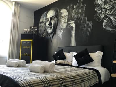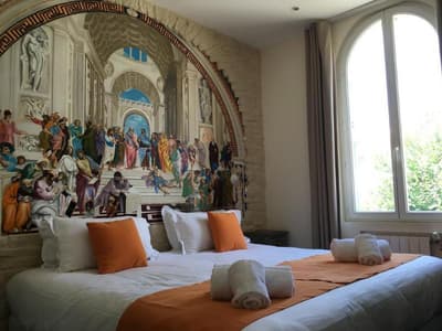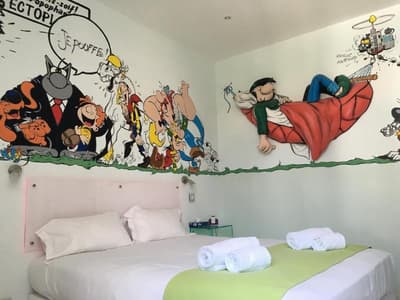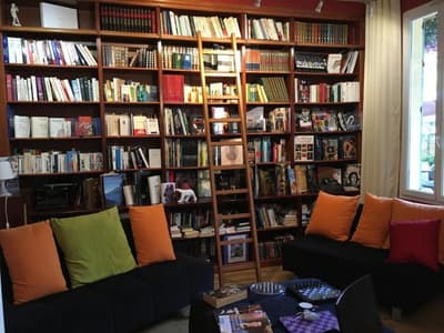 Cannes, ses marches et ses Oscars. Vous voici à 20 minutes d’escarpins du palais des Festivals, sur une colline qui domine la ville. Le quartier est résidentiel, assurément. Et c’est dans une allée pleine de charme que se cache cette maison bourgeoise qui sait se faire champêtre, avec ses volets d’un tendre vert. Idéal Séjour, le nom donne déjà envie, non ? C’est Nicole qui vous accueille : un large sourire et ce désir chevillé de partager avec ses hôtes en toute simplicité. 16 chambres pour vous héberger, 3 niveaux de confort et toutes thématisées. Il y a du cabinet de curiosités dans ces pièces ! C’est à chaque fois un univers hyper personnalisé qui vous attend, de la Commedia dell’arte à la BD, de la philo à la poésie, des légendes asiatiques à la balade africaine. C’est frais, c’est gai et certaines chambres ont même un balcon. Et à peine réveillés, vous pourrez savourer le copieux p'tit déj' dans le vaste salon bibliothèque — ou plutôt la bibliothèque qui sait se faire salon : plus de 3000 ouvrages au mur et une échelle pour accéder aux plus hauts perchés ! Des coussins pour se vautrer, des jeux pour s’amuser... et dès qu’il fera doux, c’est dans le jardin paysager que vous irez chiller, à l’ombre d’un oranger ou d’un figuier.