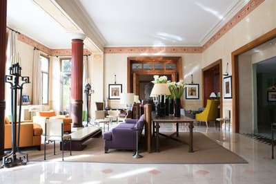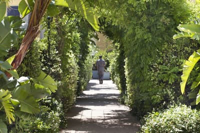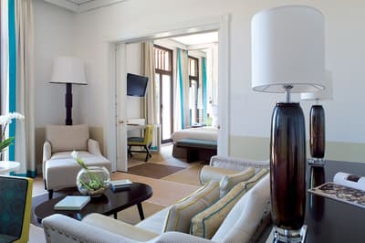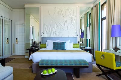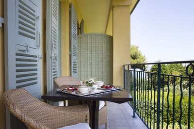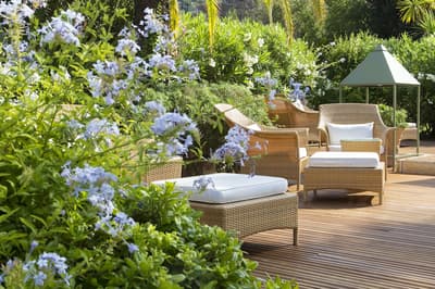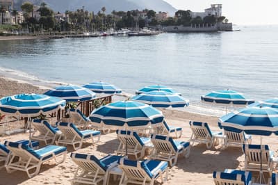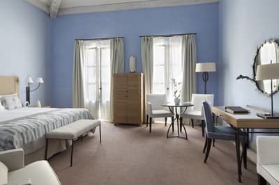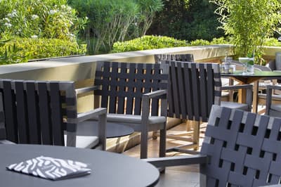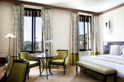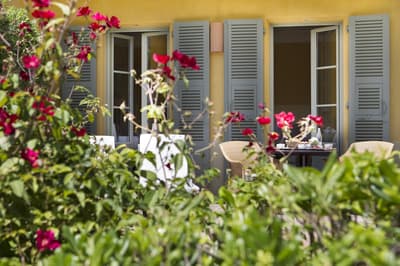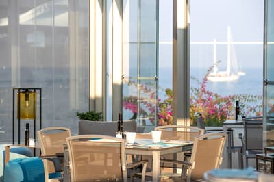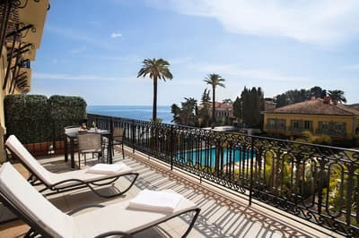 La Riviera comme à la Belle Epoque ! Bienvenue dans une imposante bâtisse de 1904, qui domine la Baie des Fourmis, entre mer et bougainvilliers. Lors de sa dernière rénovation, toute la déco de cet hôtel a été inspirée par le style néo-hellénistique de la Villa Kérylos, située juste en face. Résultat : dès le lobby, vous faites votre check-in sous des volumes XXL, entre boiseries vert d’eau, fresques et tableaux aux motifs étrusques. Des couloirs feutrés, parés de peintures contemporaines d’inspiration grecque, vous mènent jusqu’à une chambre délicieusement glamour, dont la terrasse fait face à la Méditerranée. Même atmosphère dans le grand salon avec frises, duo de colonnes doriques, immenses baies ouvertes sur la grande bleue et les jardins dessinés par le paysagiste Jean Mus. Au grill, vous déjeunez d’un poisson grillé face à la mer. A la table gastro, nappes blanches et cuisine de saison qui sent bon le Sud. Et pour piquer une tête, vous avez le choix entre le ponton de la plage privée ou la piscine chauffée. Un passage, le temps d’un massage anti-stress, au centre de bien-être Thalgo, et vous êtes prêt pour un cocktail ou un verre de rosé bien frais. Le bon spot pour le déguster : en terrasse, face aux derniers rayons du soleil.