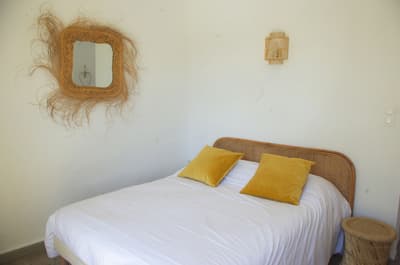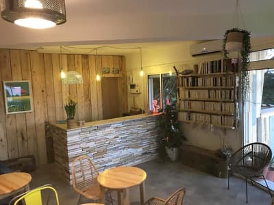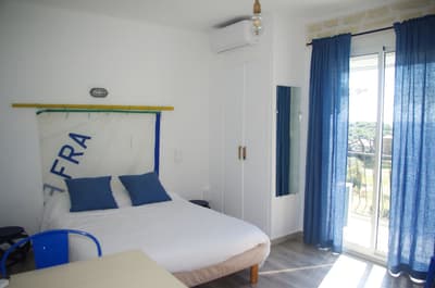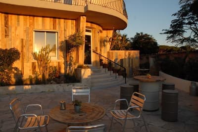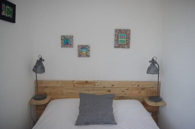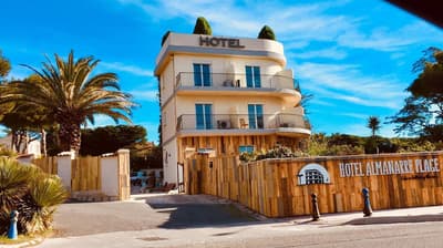 Cet hôtel-là, il inspire tout de suite confiance, avec ses balcons, son côté arrondi et son rez-de-chaussée plaqué de bois... D’ailleurs, il suffit de voir le comptoir du lounge-bibliothèque pour tout comprendre : il est fait d’un empilement de livres, simplement recouvert d’une grande planche. Pas de luxe, pas d’esbrouffe ici ! Juste des idées plein la tête, une farouche volonté écolo, des activités à gogo et une situation juste exceptionnelle. Vous êtes devant une crique de sable fin, à 5 minutes à pied de l’immense plage de l’Almanarre. Une rando sympa vous mènera des marais salants à la presqu’île de Giens. Et quelques minutes de traversée sur l’île de Porquerolles. Il n’y a pas de resto, mais beaucoup de chambres disposent d’un coin cuisine. Décorées dans une ambiance marine et récup’, elles ont toutes le privilège d’avoir une terrasse, avec une vue sur la mer. Et un bon p'tit déj' bio vous préparera aux nombreuses sorties proposées : paddle, kayak transparent pour voir les fonds marins, vélo électrique, cours de hatha yoga et même visite d’un producteur de spiruline (une super micro-algue). Elle est pas chouette, la vie ? Surtout dans un hôtel qui cumule les engagements écolo concrets et milite pour la reconnexion à la nature !