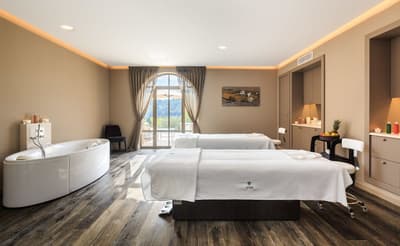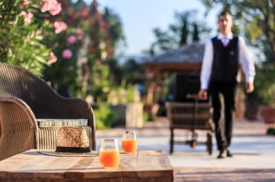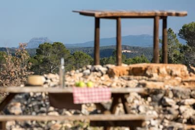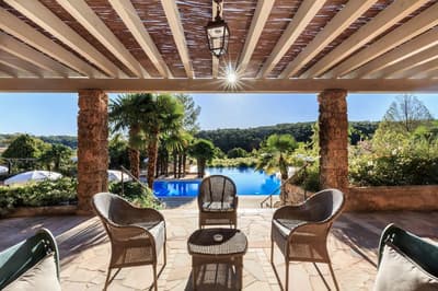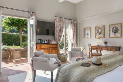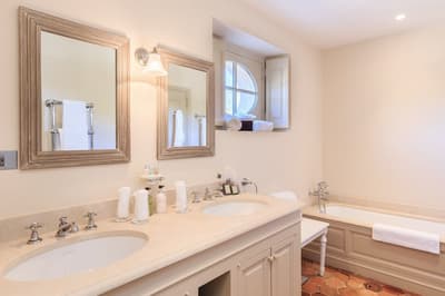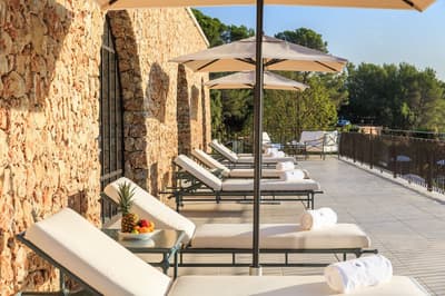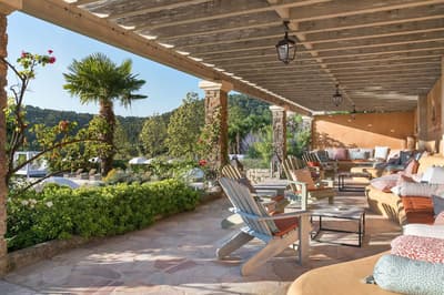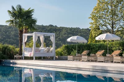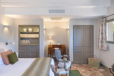 A vous la vie de château dans l’arrière-pays varois ! Ça commence avec un chemin forestier à suivre, le portail du domaine à franchir, jusqu’à la découverte d’une place et sa fontaine, comme dans un village provençal. Dès la réception de l’hôtel, le ton est donné avec mobilier chiné, grandes dalles patinées au sol, harmonie des couleurs et vues sur la nature, car vous êtes au cœur d’un parc de 690 hectares. Quiétude, raffinement et tonalités provençales également dans votre chambre, qui fait face aux vignes du domaine. Prélassez-vous sur votre balcon. Prenez le temps d’une flânerie entre pins parasol, chênes verts et oliviers, avant de plonger dans une des trois piscines ! Ensuite, massage anti-stress au spa Cinq Mondes, un poisson grillé au déjeuner à la terrasse du « Bistrot » et le farniente à volonté dans ce refuge dédié à la détente. Bien sûr, il faut tester la table étoilée, inspirée par le potager de 3 000 m2. Enfin, laissez-vous tenter par une dégustation de vin : le verre de rosé, servi frais, face aux vignes, c’est bon et c’est bien pour votre compte Insta ! L’autre trip à ne pas manquer : l’infusion à boire face au jardin japonais du spa. Une vraie pause saine et zen.