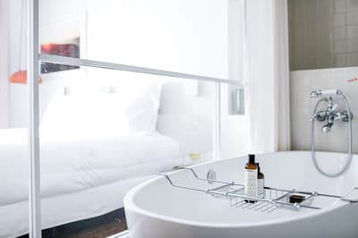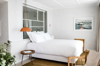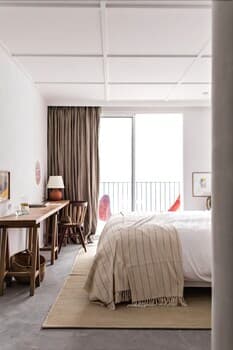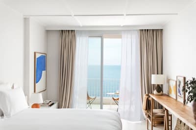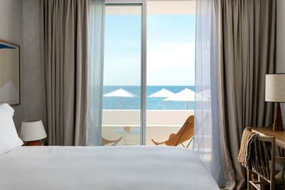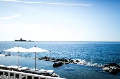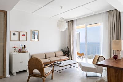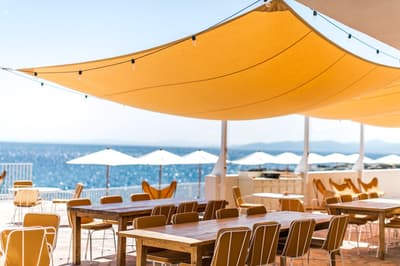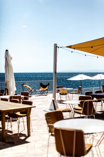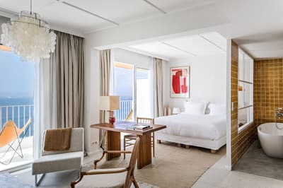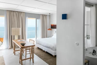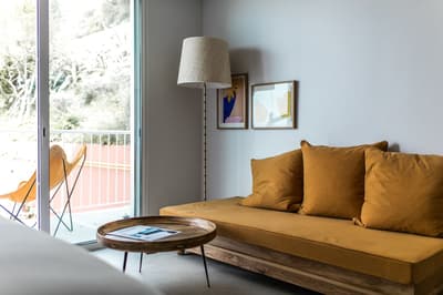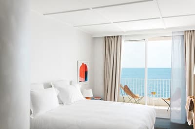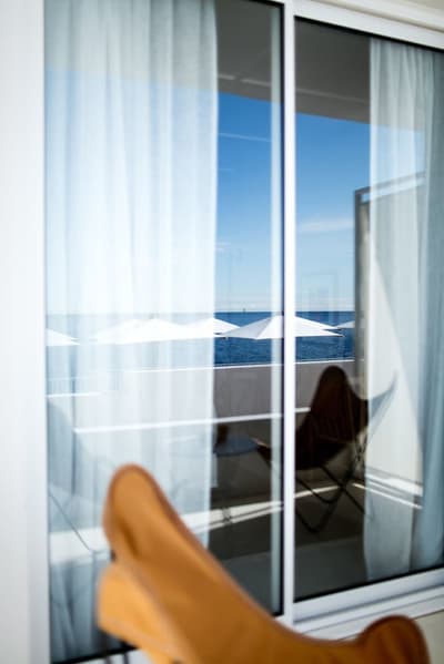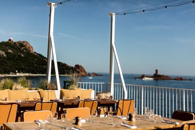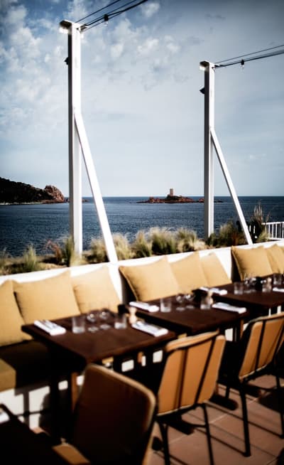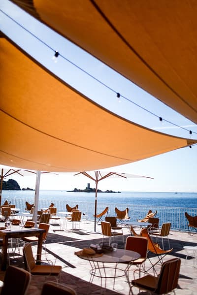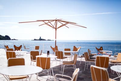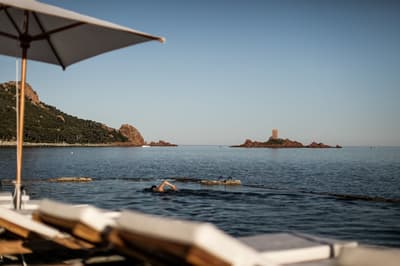 C’est l’un des spots les plus en vue de Saint-Raphaël ! Car, ici, tout a été pensé pour que vous viviez à la cool, les pieds nus du matin au soir, au ras de la mer, entre figuiers, tamaris et mimosas. Le cadre est plein de chic et de charme, sans jamais verser dans l’ostentatoire. Dès le lobby, le ton est donné : sofa paré de cuir, appliques en terre cuite, objets chinés, sélection bien faite de beaux livres, bouquets de fleurs couleur locale, le tout ponctué de touches de bleu Méditerranée et rouge Estérel. Ça se prolonge dans votre chambre, avec balcon ou terrasse face à la mer, mobilier vintage, marbre, murs blancs, panier de plage à dispo et bière de Saint-Raphaël au frais. Ambiance « cabanon de plage », sans télé, pour une invitation à la déconnexion. La suite : cours de yoga, ciné en plein air, plongeon dans le couloir de nage ou la piscine XXL d’eau de mer, remplie par le va-et-vient des vagues… Détente absolue aussi au spa, le temps d’un massage relaxant avec playlist sur mesure. Et au resto, que du local : à la table gastro comme au garde-manger de La Plage. Enfin, le bon endroit pour buller ou bouquiner : les terrasses jonchées des iconiques fauteuils Butterfly.