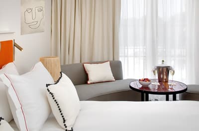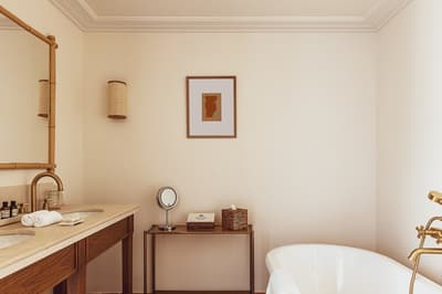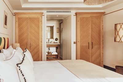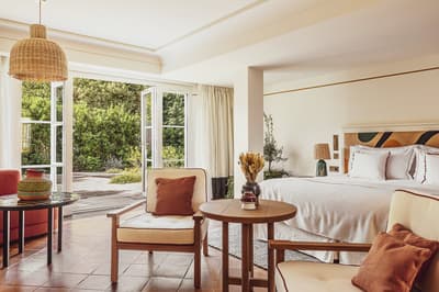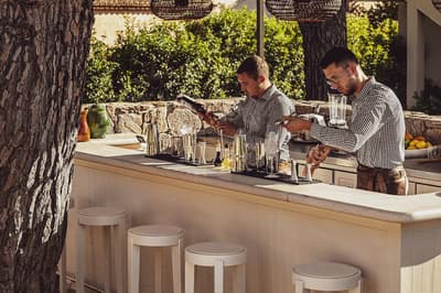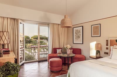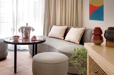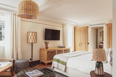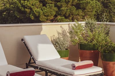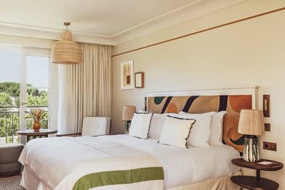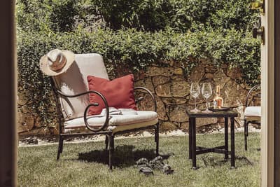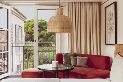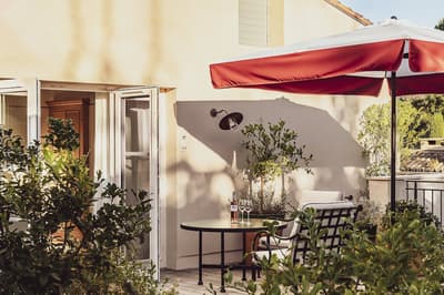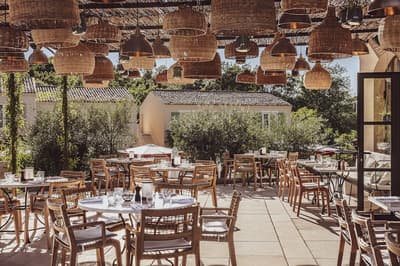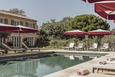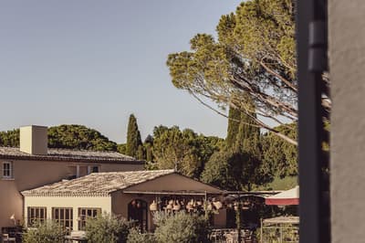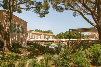 Vous allez le reconnaître tout de suite : quatre bâtiments ocre aux volets verts. Et dès le lobby, vous comprenez qu’ici, on a mixé villa provençale, maison de famille et bohème chic tropézienne ! Le tout aménagé autour d'une piscine parée de mosaïque bleu vert et bordée de pins. Vous allez aimer la terrasse XXL pour la détente, le premier café de la journée, un poisson grillé ou un verre de rosé en début de soirée. Même coolitude dans votre chambre, où l’architecte d’intérieur Charles Zana a recréé l’atmosphère du Saint-Trop des sixties, lorsque Bardot marchait pieds nus sur le port de pêcheurs. Et puis partez flâner dans les jardins imaginés par l’architecte paysagiste Jean Mus... Baladez-vous dans le champ de lavande et le potager, tous les deux dominés par des pins parasols : là, vous allez en faire, des stories d’enfer ! Le matin, laissez-vous tenter par le cours de yoga, au milieu de la végétation méditerranéenne, avec le chant des cigales en fond sonore. Autre spot en vue : le spa , aménagé comme une retraite secrète. Allez-y pour le massage relaxant ou celui aux pierres chaudes. A ne pas manquer non plus : la partie de pétanque en fin de journée, juste avant l’apéro !