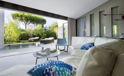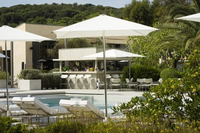 Bienvenue dans une oasis ultra-contemporaine, entre mer et vignes ! C’est la sensation que vous avez en arrivant dans cet hôtel éco-responsable, imaginé par l’architecte d’intérieur Christophe Pillet. Son parti pris : dire non aux cloisons ! Résultat : dès le lobby, c’est spacieux, lumineux, ouvert sur la nature environnante, avec des baies vitrées XXL partout. Y compris dans votre chambre, qui peut s’ouvrir sur une terrasse, un jardin, voire un bassin de nage rien que pour vous ! Tout vous invite à l’art de vivre. A commencer par la salle de petit déjeuner, inspirée par le thème du polo. La meilleure table pour le premier café de la journée ? Sur la terrasse, à côté de l’olivier, face à la piscine. Enchantement aussi au resto étoilé et locavore. Quant au Bar Dom Pérignon, tout est dit dans son nom : cocktails et coupes de champ’ sont au top ! A vous le Bellini lorsque le soleil se couche sur la campagne varoise ! Vous allez aimer aussi le farniente à l’ombre des palmiers. Enfin, dernier spot à ne pas manquer : le spa by Cinq Mondes. Là, laissez-vous tenter par un soin du visage aux 5 fleurs de Bali, un gommage à la purée de papaye ou autre massage polynésien hyper délassant…
