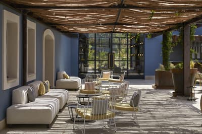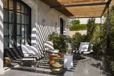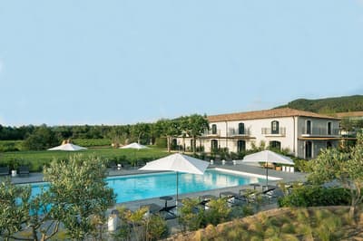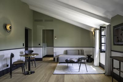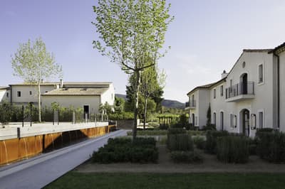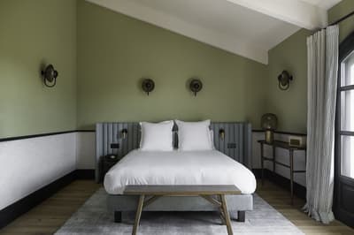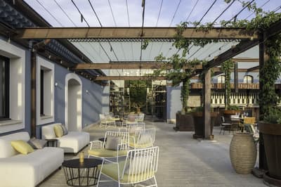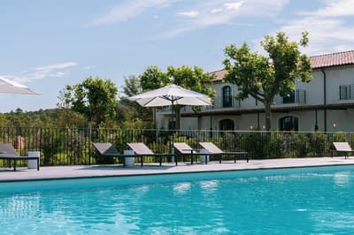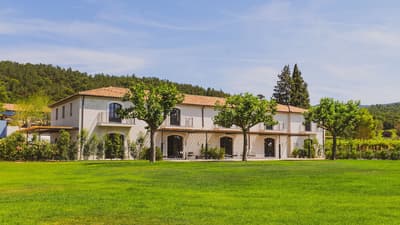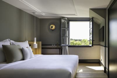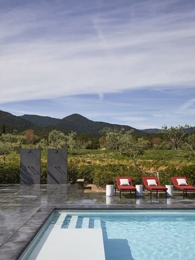A vous l’épicurisme en version très originale ! Ici, vous êtes à mi-chemin entre la propriété viticole et le boutique-hôtel plein de chic et de charme... D’une part, 46 hectares de vignes en agriculture bio. D’autre part, des chambres imaginées par les architectes Emil Humbert et Christophe Poyet, qui ont conçu l’ensemble de l’établissement. Avec un parti pris pour le béton, le chêne vieilli, le marbre, le laiton et le cuir : une parfaite illustration du luxe discret ! Côté circulation, fluidité et curiosité sont de mise. Un exemple : pour accéder aux chambres, avec vues sur les vignes et la nature provençale, vous traversez le chai du domaine : ça va vous donner envie d’instagrammer tout de suite ! Pareil sur la terrasse en rooftop du resto bistronomique et locavore, qui surplombe les vignes. Sans oublier les cocktails colorés et très inspirés du barman-mixologiste, ou encore le brunch pantagruélique du week-end. Au programme également : chiller au bord de la piscine, participer à une dégustation de vins rosés du domaine, vous dépenser dans la salle de sport et enfin buller sur une place bordée d’arbres et de fontaines. Vous allez vite y prendre goût !
