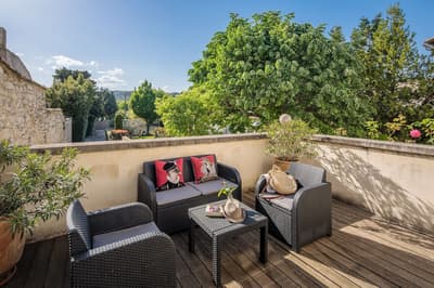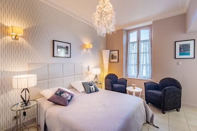 Attendez, ralentissez, vous êtes passé devant ! Oui, c’est là ! Cette façade ultra discrète, là dans la rue la plus commerçante de la plus chic des voisines avignonnaises ? Si si, croyez-nous ! Voilà, c’est bon, vous y êtes. Ah, oui, c’est ça, vous avez le souffle coupé net. Vous êtes au bon endroit. Oui, nous sommes d’accord, la piscine encerclée de pierres est merveilleuse. Et puis, il y a ce luxe que seul le luxe procure, celui d’avoir la sensation d’être seul au monde. Et vous êtes à l’abri de tout dans cet hôtel qui compte six chambres et trois suites dans une proximité à la Chartreuse qui inspire le calme et la ressource. Deux chemins, deux choix de vies cornéliens s’offrent à vous. Le contemporain ou le médiéval ? D’un côté le design et le graphisme et de l’autre les poutres en bois et la pierre de taille. D’un côté le vintage des chaises Brauer et des tabourets tam tam, de l'autre les tomettes au sol qui dans la pure tradition provençale se parent d’élégants motifs floraux. Prenez le poul ultra tendance de la bourgeoisie Villeneuve avec au bout d’un pont l’imposante cité des Papes, c’est le lieu de villégiature idéal particulièrement pendant la folie du festival où pouvoir rentrer et profiter du seul chant des cigales n’a pas de prix.