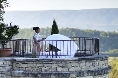 Vous êtes fan de la vie des princesses et des princes, celles et ceux d’hier et celles et ceux d’aujourd’hui ? Vous avez tapé à la bonne porte de la bonne demeure ! En bonne seigneurie, elle domine tout en étant au centre... Votre bastide se trouve dans Gordes, dans la falaise. C’est une maison en pierre blanche dont l'architecture est typique de la Provence. Et dont les dépendances sont devenues des lieux dédiés à l’ultra-luxe : spa, resto et, fait incroyablement rare, antre pour les enfants ! L'hôtel vous fait basculer au XVIIIe siècle, dans un monde où les murs ne cherchent pas l’épure. Tableaux de maîtres et boiseries sont articulés par des tentures aussi épaisses que nobles. Évidemment, la piscine est un must, car bien sûr il y a une piscine ! Vous la verrez peut-être si, puisque les enfants sont gardés, vous ne passez pas tout votre temps au spa ou dans l’un des septs restaurants (oui, sept !), dont un tenu par le plus médiatique des chefs, Jean-François Piège. Ce qui fait la force d’un palace, c’est souvent sa dose de folie... Et là en guise d'espièglerie, est installée, sur une terrasse pleine vue sur les alpilles, une aire de jeux : billard et baby-foot. On se fait une partie ? Les enfants sont gardés, on l’a déjà dit !