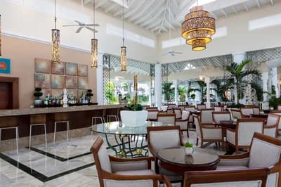 Quel beau vert ! Le Luxury Bahia Principe Bouganville - Adults Only baigne dans une mer des Caraïbes aux reflets émeraude, comme les mangroves et les plantations qui l’entourent. La culture de la canne à sucre a enrichi cette région de la côte sud-est, qui a longtemps dédaigné le tourisme. San Pedro de Macorís, sa capitale, possède de belles demeures de style colonial. Les pavillons aux toits rouges, les kiosques à mariages du Luxury Bahia Principe Bouganville s’inspirent de leur architecture triomphante. D’ailleurs, la classe, on est reçu à la réception par son propre majordome. Les chaises-longues dispersées dans la cocoteraie, les bancs dans le jardin tropical, parmi statues et fontaines, permettent de se poser pour lire ou consulter son smartphone. Au large, un petit îlot appartient à l'hôtel : un bateau y emmène les résidents toutes les heures. Il y a aussi un programme varié de sports aquatiques, avec catamaran et paddle inclus, gymnastique avec coachs, de compétitions diverses. Les deux piscines, une calme et une animée avec bar aquatique, bain à remous et restaurant, se déploient de part et d’autre de l’hôtel. Le week-end, la clientèle américaine anime les lieux. Parmi les cinq restaurants, accessibles le soir sur réservation, gros coup de cœur pour le Pescador, le restaurant brésilien et le Don Pablo. N’oubliez pas votre anti-moustiques, la région étant marécageuse.