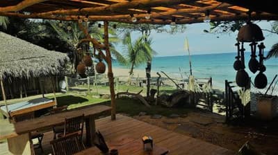 Très rustique, elles et faite de bois et de bambou. Le bungalow est en harmonie avec la nature environnante pour un séjour au calme et couper du quotidien. Très ouverte, elle laisse la lumière pénétrer dans son ensemble, créant une pièce lumineuse. Elle bénéficie d’une décoration organique et authentique. Ses pièces tressées, en osier et en rotin, rendent l’ensemble encore plus exotique.