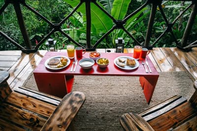 Les Cabanes Café offrent une vue imprenable sur la jungle et un lit queen-size drapé d'une moustiquaire, assurant un repos paisible après une longue journée d'activités. Pour votre intimité, chaque cabane a des rideaux et un mur arrière entièrement fabriqué à partir de vignes de la jungle tissées à la main.
