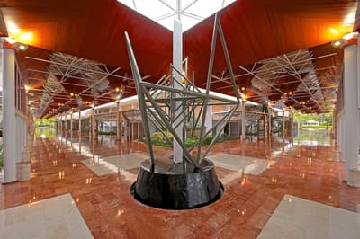 Qui a dit que les adultes ne savent pas s'amuser? Le Barcelo Bavaro Beach Resort s'inscrit en faux. Il partage avec son voisin, le Barcelo Bavaro Palace De luxe, deux kilomètres de plage descendant dans un lagon bleu turquoise abrité par une barrière de corail... La plage Bavaro est célèbre dans le monde ! Il forme avec lui l'un des plus grands complexes de l'île, qui ont donné à la côte est de la République Dominicaine sa réputation. On y profite d’une des plus grandes piscines des Caraïbes et de 4 autres piscines intégrées dans de beaux jardins tropicaux. Assis sous le lobby, une grande palapa, avec fontaine, sculpture, bar, place où l'on s'assied sur des poufs pour jouer aux dominos, ou au jeu d'échecs géant. Avec son voisin, il déborde d'équipements, du mini-golf au parcours de golf de 18 trous ou encore aux 3 courts de tennis. Evidemment on peut pratiquer tous les sports nautiques dans ce lagon turquoise, du catamaran aux masques et tubas pour admirer les poissons. L'établissement offre aux adultes des vacances calmes et reposantes dans un cadre tropical. Mais il suffit d'embarquer dans un petit train pour sillonner l'immense parc hôtelier Barcelo, une véritable ville avec casino, discothèque, spa, shopping center avec duty free, centre de convention, bars et restaurants à n'en plus finir..