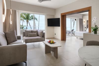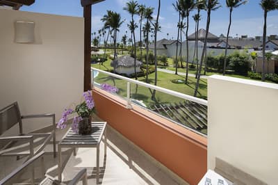 Cette suite très agréable, dispose d’une piscine au pied de sa terrasse. Elle procure un espace agréable et confortable. Dispose d’une terrasse avec un bain à remous, une petite table et de belles chaises. Elle accommode 1 lit King et 2 lits doubles. Coin salon avec fauteuils et une belle lampe. Grande salle de bain chic avec douche à effet de pluie.