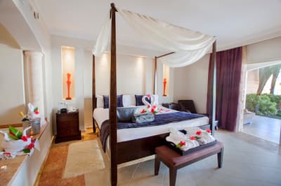 L’intérieur bénéficie d’une décoration plutôt élégante et comprend un lit king-size à baldaquin, un coin salon séparé de la pièce principale, un mobilier contemporain et l’ensemble est dans des tons clairs. La salle de bain est dotée d'un double vasque et d'une douche à l'italienne séparée. Le tout dans une atmosphère chic et tropicale à la fois !