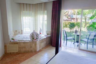 Canapé et bureau, Lits king, Balcon ou une terrasse avec mobilier et transats, Jacuzzi dans la chambre et jacuzzi extérieur, Douche "à l'italienne" indépendante, Sèche-cheveux, produits d'accueil et miroir, Peignoir Et Pantoufles, Climatiseur et ventilateur de plafond, TV avec chaînes internationales, Téléphone ($), Coffre-fort gratuit, Machine à café et Nespresso, Service en chambre disponible de 7h à 23h, Porte séparée pour le service en chambre, Bouteille de Champagne à l'arrivée dans la chambre (1 par séjour), Minibar avec service de réapprovisionnement quotidien, 1 bouteille d'alcool premium, Planche Et Fer À Repasser, Wifi gratuit, Enfants Bienvenus.