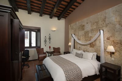 Cette chambre romantique est capable de vous raconter l'histoire de l'hôtel depuis 1502. Elle est située dans le côté historique du bâtiment et possède une vue sur la rue célèbre "Calle Las Damas" et sur le Panthéon National.