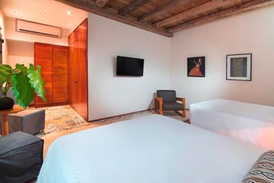 Alerte pépite au cœur de la zone coloniale de Saint-Domingue : le Luca Hotel by Oxo Hotels est carrément canon avec ses murs en pierres d’origine ! Derrière sa façade discrète, vous découvrez un royaume de relaxation à la sauce dominicaine : les arcades voûtées aux couleurs chaudes laissent deviner un patio divin où trônent de grands palmiers. C’est ici que vous prendrez votre petit-déjeuner ! Un hôtel intimiste, avec seulement 11 chambres qui se déploient tout autour de ce patio élégant avec ses carrelages authentiques. L’atmosphère est si chaleureuse ! Et on la retrouve bien dans les chambres, qui offrent toute l’âme des lieux à travers les pierres révélées dans les murs ou les poutres au plafond. A peine le temps de vous affaler sur votre matelas douillet, car oui, les lits sont confortables ici, et vous voilà propulsé sur les toits : prenez place sur la terrasse absolument géniale et cosy pour siroter un cocktail et profiter d’un coucher de soleil de fou. Ou optez pour une privatisation du jacuzzi à l’abri des regards… Instants en amoureux inoubliables en perspective ! Une adresse idéale pour un voyage en tête-à-tête, l’hôtel est si romantique ! Et en plus, vous êtes bien placés pour partir visiter la ville…