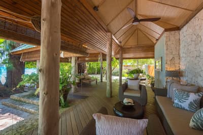 Situé directement sur la plage, il dispose de chaises en bois sur la véranda privée pour se prélasser, ou de chaises longues alignées sur le front de mer pour prendre des bains de soleil en sirotant son cocktail préféré. À noter qu'il comporte une cave à vin pour des soirées festives.
