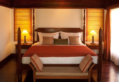 Spacieuse, elle profite de l'authenticité de l'époque coloniale d'antan avec un mobilier en bois, des accessoires tropicaux, un tableau représentant des dauphins et se complète dans des tons apaisants. Elle comprend une connexion wifi haut débit et un grand placard pour des habits impeccables. La chambre est dotée d’un lit king-size et jumeaux et d’une literie de qualité. La salle de bains à ciel ouvert est équipée d’une baignoire française. Ambiance exotique !