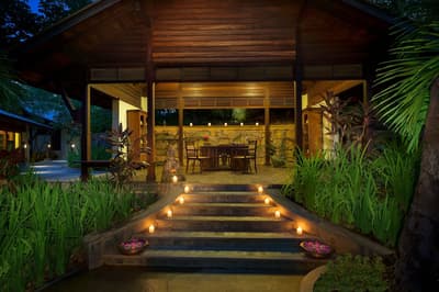 Niché dans la cime des arbres de l'île, ce magnifique lodge donne sur la forêt luxuriante et dispose d’une terrasse extérieure, d’où vous pourrez admirer en toile de fond les eaux turquoise illuminées du parc national marin de Sainte-Anne, ainsi que le coucher du soleil. À noter que cette forêt tropicale est un refuge qui attire de nombreux oiseaux et animaux sauvages rares des Seychelles.