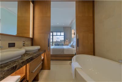 Le top ! Du balcon aménagé de beaux fauteuils, elle offre une vue époustouflante sur l’océan. Très spacieuse, elle dispose d’un grand salon et d’une petite kitchenette. Elle baigne dans une atmosphère calme et relaxante. Salle de bain avec baignoire et une douche à effet de pluie.