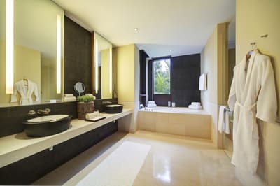 Alliant tradition et confort contemporain, elle comprend un parquet ciré, un mobilier épuré et élégant et se complète dans des matériaux naturels et des finitions somptueuses. La chambre est dotée d’un lit king size ou jumeaux avec matelas Sealy Posturepedic ainsi que d’un somptueux linge Frette; à noter qu’un lit bébé peut être ajouté sur demande. La salle de bains est équipée d’une baignoire, d’une douche à effet pluie séparée et deux lavabos. Ambiance zen !