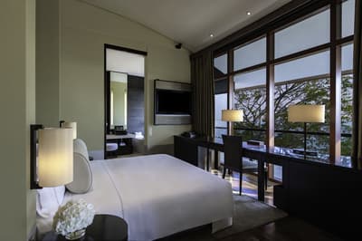 Située dans le bâtiment principal, elle s’ouvre sur des jardins paysagers luxuriants que vous pourrez contempler du confort de votre chambre et du balcon spacieux, tout en prenant votre petit-déjeuner. Elle dispose d’une belle luminosité qui imprègne toute la pièce, grâce aux grandes baies vitrées. Durant votre séjour, vous bénéficierez de tout le confort que cette chambre a à offrir.