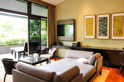 Que vous soyez en vacances ou en voyage d’affaires, elle dispose d’équipements modernes tels qu’un grand bureau pour travailler. Elle s’ouvre sur la mer de chine méridionale que vous pourrez contempler du confort de votre chambre, ainsi que du grand balcon avec transat pour vous détendre et profiter du soleil. À noter que la chambre et le salon sont séparés.