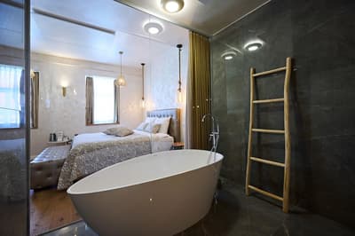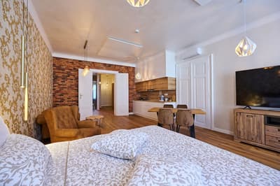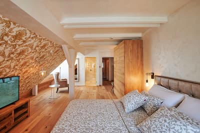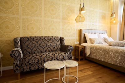 Avis aux voyageurs qui aiment les hôtels avec un vrai cachet : Hisa Ancka ne détient pas seulement le label écologique Clef Verte, il envoie du lourd côté style ! Ici, on a accordé beaucoup de soin à la déco et à l’aménagement des espaces intérieurs. Résultat : des chambres et des appartements spacieux au design à la fois chic, romantique et chaleureux. Imaginez-vous dans un lit XXL fixé sur un sommier aux capitons dorés, lui-même au milieu d'une grande pièce (comprise entre 25 m² et 67 m² quand même) avec du parquet au sol et des murs composés de briques ou d'élégantes tapisseries florales. L'image est sympa, non ? D'autant que la fenêtre donne sur la ville, les montagnes ou le jardin dans la plupart des cas. Passez la porte d’entrée et dirigez-vous vers l’accueil, où vous aurez un aperçu de la haute qualité du service ici. Eh oui, l’hôtel n’est pas réputé que pour son design léché, mais aussi pour la gentillesse exceptionnelle de son personnel ! Autrement dit, vous êtes entre de bonnes mains. Laissez-vous guider jusqu’au restaurant, où on sert un petit déjeuner de haute volée avec pas mal de fait-maison et des produits frais. Ou bien vers le SPA qui comporte un sauna finlandais parfait pour se décontracter. Une fois repu et détendu, il ne vous reste plus qu’à partir à la conquête de Slovenj Gradec. Les indications et conseils de l’équipe vous seront au passage très utiles pour explorer cette petite ville du Nord de la Slovénie