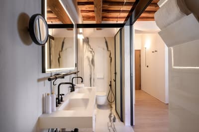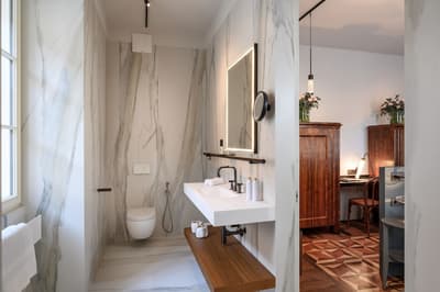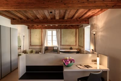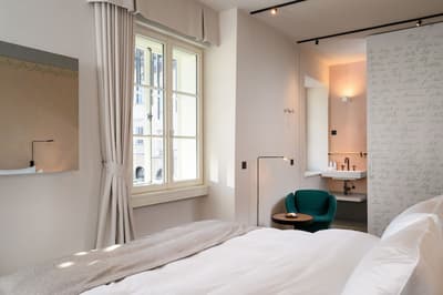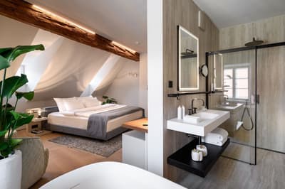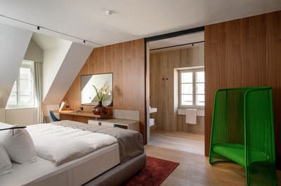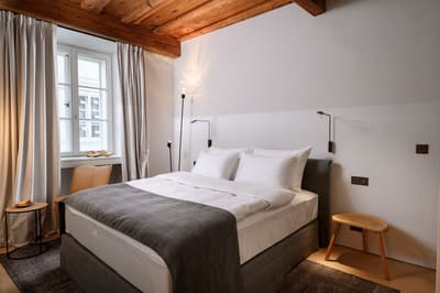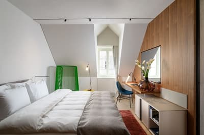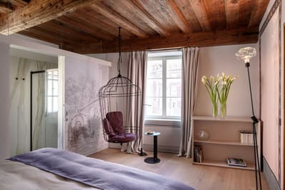 Vous connaissez déjà Vienne, Prague et Budapest ? Alors vous allez adorer Ljubljana, la capitale de la Slovénie ! Quant au Zlata Ladjica, c'est le pied-à-terre le plus merveilleux qu'on puisse vous souhaiter ! A ses pieds, la rivière Ljubljanica s'épanche et serpente sous les ponts de pierre, dont l'élégant Cobbler's bridge, que vous verrez peut-être de votre fenêtre. L'architecture de l'hôtel évoque les demeures cossues du XIXe, dans le style néo-classique le plus pur. Au rez-de-chaussée, le restaurant révèle de superbes voûtes sous lesquelles vous prendrez tous vos repas, avec un plaisir non dissimulé. À moins, bien entendu de vouloir tester des tables réputées alentour. Les chambres, elles, sont clairement le point fort de l'établissement. Les poutres apparentes, les parquets marquetés et les restes de fresques polychromes servent des mises en scène contemporaines et design. On aime beaucoup les murs calligraphiés de la chambre Urška and the Water Man. On adore ces salles de bain en-suite, dont celle, sublime, de la chambre Zlata ladjica, tout en transparence. Et toutes ces vues plongeantes sur la vieille ville sont tellement romantiques...