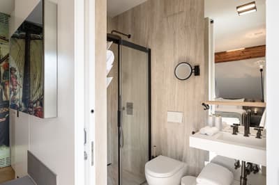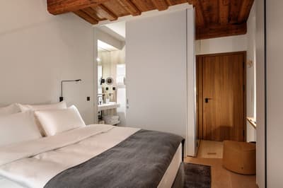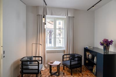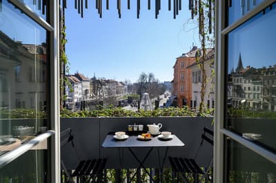 Conçue par le plus grand architecte slovène Jože Plečnik, le maître architecte a conçu le pont comme une place perchée au-dessus de Ljubljanica, dont la plate-forme devait compenser le manque d'espace ouvert dans le centre de la vieille ville. La main créative de Plečnik a également laissé une marque dans la pièce, car elle abrite une réplique de l'une de ses chaises originales. La salle de bains lumineuse et luxueuse est équipée de toutes les commodités nécessaires. Le tout dans une atmosphère zen !