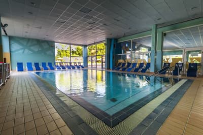 Escale apaisante au programme du Grand Hotel Primus, face à la vieille ville (de 2000 ans !) de Ptuj et son château. Vous voilà dans un hôtel de 119 chambres, toutes équipées d’un balcon avec vue sur la forêt ou la silhouette de la cité antique. Ici, vous allez prendre le temps de profiter de l’eau thermale locale, pleine de vertus, à travers les bassins, piscines et autres douches bienfaisantes. Car oui, l’hôtel possède ses propres thermes ! A vous la détente entre deux randos et autres expéditions dans la région, ou entre deux dégustations chez les vignerons alentour. Mais ce n’est pas tout : vous pourrez aussi prendre part à une séance de yoga ou vous défouler sur un vélo elliptique à la salle de sport… Vous l’aurez compris, ici, c’est un repaire pour prendre soin de soi et de sa santé. Et ça passe même par le resto, qui propose une cuisine healthy savoureuse. Au top pour les couples qui veulent se faire un petit reset en Slovénie. Mais convient aussi aux familles : un parc aquatique se trouve juste à côté.