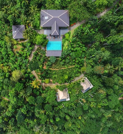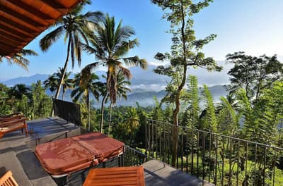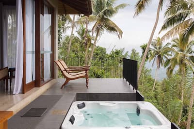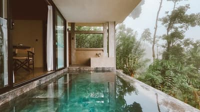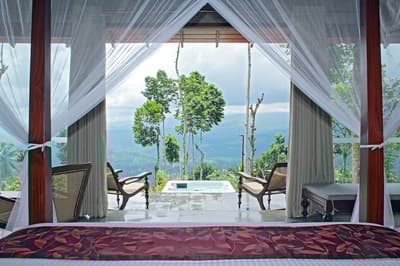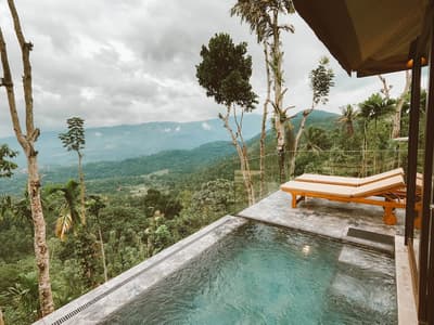 Des villas comme accrochées à la montagne avec piscine privée ou vaste jacuzzi®, un excellent service et, autour, dansent rizières et forêts.