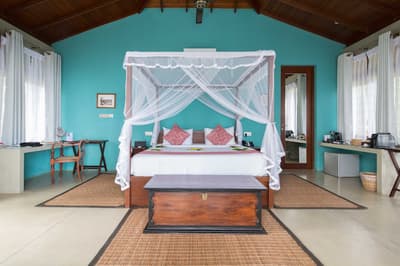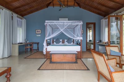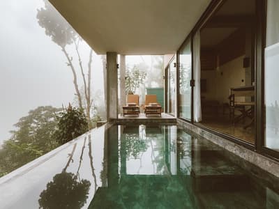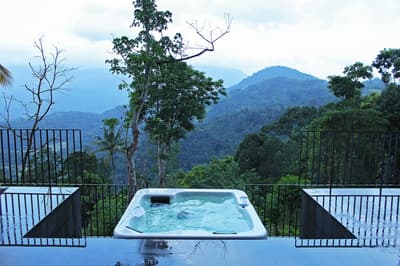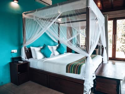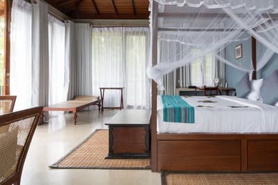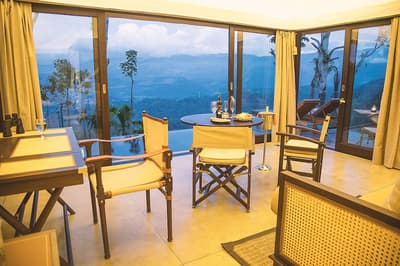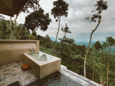 4 heures de route. C’est ce qu’il vous faudra parcourir depuis l’aéroport de Colombo pour atteindre les sept hectares de ce spot paisible... Kandy s’annonce - non, ce n’est pas un jeu de votre smartphone, ni un dessin animé japonais, mais une ville tout en bouddhas sacrés ! La voiture grimpe avec nonchalance sur la colline enchâssée dans la jungle. Bienvenue à l’Aarunya Nature Resort ! Vous avez opté pour une des 6 villas. D’ailleurs, à l’exception d’une suite, il n’y a qu'elles, plongées entre jardins d’épices et plantations de thé... Un grand lit à baldaquin, une malle, une lampe à trépied : l’ambiance est délicatement coloniale, épurée et chaleureuse. Ecartez les voilages de la baie vitrée. Allez, on referme sa mâchoire : oui, la vue est juste amazing, incredible, gorgeous, surtout depuis votre jacuzzi®, ou carrément de votre piscine à débordement ! Et attendez donc demain, lorsque le soleil pointera tranquillement le bout de son nez au-dessus de la brume matinale, enrobant d’un halo fantomatique les montagnes Knuckles. Vous allez vivre pleinement la signification de Aarunya en sanscrit : "premiers rayons du soleil"... Difficile sinon de s’extirper du resort. Un cours de yoga, une excursion à Kandy et vous voici rentrés, juste à temps pour le tea-time et son mélange exclusif de thé artisanal. Ensuite, le gloussement du ruisseau en contrebas sonne votre rendez-vous au spa. Un massage ayurvédique, un tête-à-tête avec le coucher du soleil, un voyage culinaire en 9 plats. Le temps s’est arrêté.