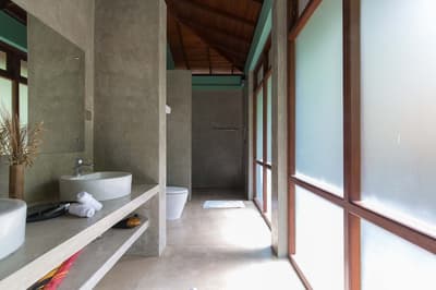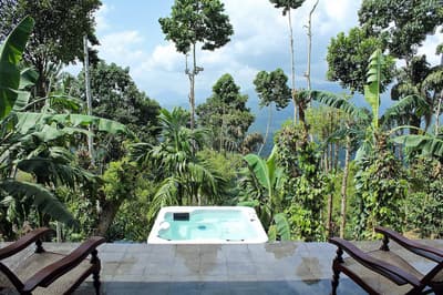 Superbe ! Nichée parmi la végétation luxuriante, c’est un havre de paix. D’une dimension généreuse, la terrasse dispose d’un jacuzzi et de beaux fauteuils pour apprécier le cadre merveilleux. Idéale pour un couple, elle accommode un grand lit king. Salle de bain surdimensionnée avec douche à effet de pluie.